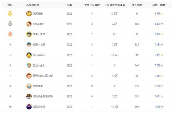 今年三月,以升官系统代替等级奖励的答题小游戏开始出现,两款代表作《成语小秀才》和《成语中状元》在阿拉丁指数小游戏排名榜上快速攀升。目前《成语小秀才》排在阿拉丁小游戏排名榜第三名,《成语中状元》排在阿拉丁小游戏排名榜第四名。