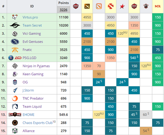 在此之前,VP、Secret、VG、EG和Fnatic均已获得了足够的积分,确保自己的TI9直邀名额,而在今天的比赛结束后,LGD成为了第六支直邀队伍。