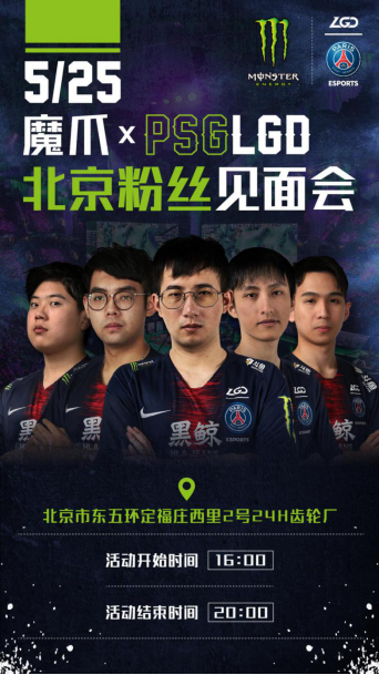 5月25日,魔爪PSD.LGD粉丝见面会将在北京举办,为PSD.LGD的铁粉们提供了绝佳的近距离互动机会,也为LGD TI9进行加油助威!请带着你和LGD战队的故事,带着你对队员们的祝福,来到现场为PSG.LGD助威,加油!Monster Energy魔爪也将全程为本次见面会提供能量饮料支持,带上你的热情,快来一起释放野性!