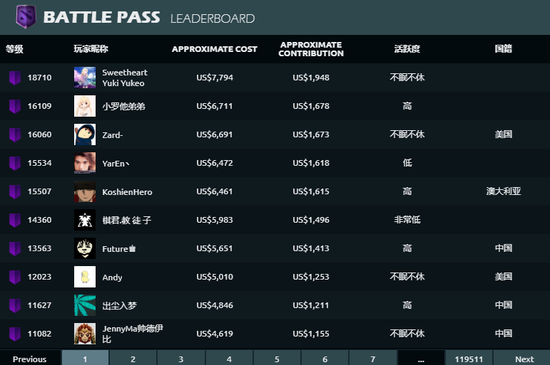 而根据stratz.com的数据显示,目前玩家中勇士令状等级最高的为18710级,这位土豪正是去年本子等级达到10万级的来自沙特阿拉伯的王子。(而且他的活跃度是不眠不休……真实宅)