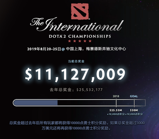 距离TI9勇士令状发售已经过去六天的时间了,而在这六天里,来自全世界的DOTA2玩家都为了小本子纷纷剁手。如今,TI9奖金池已经突破1100万美元。