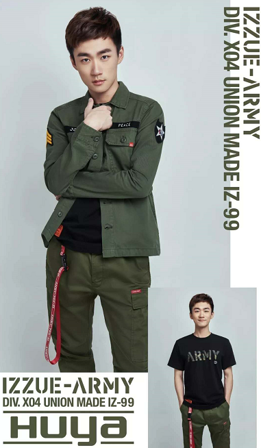 izzue是知名服装集团i.t旗下的原创潮牌,纵观i.t之前选择合作过的艺人,不乏吴亦凡、鹿晗这样的顶级流量,而就在不久前,izzue选择与不求人合作打造了春夏军事造型。