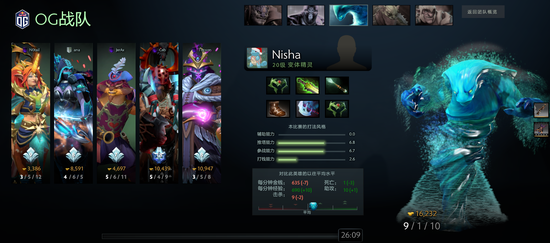 第二波高地团战,尽管OG在第一时间就打出了巨魔的买活,但由于技能全部交光,导致他们无法处理Nisha的水人。第二时间,水人变身黑弓打出关键沉默。残局,Nisha将OG的三名英雄逐个带走。《左传》有云,“一鼓作气,再而衰,三而竭”。前两波都没打下来,在Nisha拿到虚灵刀后,OG就更找不到活路了。23分钟,黑弓和他的两个队友都被水人擒获。最后的大决战,OG几乎是一触即溃。凭借着这场比赛的胜利,秘密拿到了前往俄罗斯的机票。