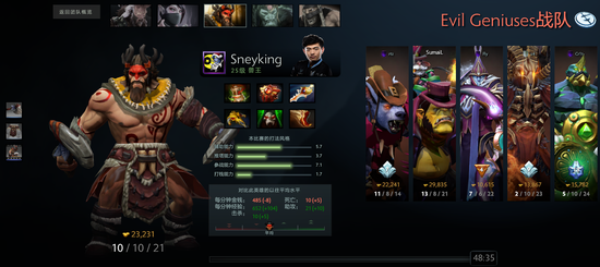 尽管在昨天的比赛中发挥不佳,但能从秘密的身上拿到一分,证明液体并没有因为Major决赛的落败受到打击。那局比赛,奇迹哥的TA发挥完美。他先是在中路配合KuroKy的神谕打爆了MidOne的神灵,16分钟跳刀黯灭入手后,TA的节奏一发不可收拾。就在秘密试图处理萨满和狼人的召唤物时,奇迹哥找到了奇佳的切入位置,将秘密众人一扫而光。