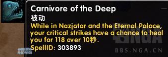 手套-深海肉食者:在纳沙塔尔和永恒王宫,你的暴击有几率在10秒内持续治疗你1592。