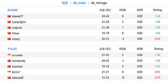 来到图一Train,先做进攻方的TYLOO选择三面夹击外场,EHOME的远点USP通过点射将进攻方一一击杀。来到第一个长枪局,3把微冲给EHOME带来不小的麻烦,TYLOO依靠AK的枪械优势将比分反超为3-2。来到中期单人镇守内场的DeStRoYeR发挥出个人能力,依靠一把AUG将冲击内场的三人全部击杀,度过关键局的EHOME慢慢起势,依靠整体防守的EHOME将TYLOO的战术全部化解。发现进攻率遭针对的TYLOO在上半场后期凭借干拉拿到宝贵的两分,上半场比分TYLOO暂以7-8落后一分。