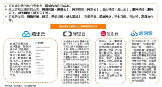 当5G实现规模商用后,带宽对云游戏的瓶颈限制将不复存在。结合云游戏的核心竞争力——海量的游戏内容及低成本,国内提供云游戏服务以及具有游戏研发能力的公司,或许在长期具有竞争优势。以腾讯云为例,其拥有全球覆盖的自建万兆云机房,配备20线BGP顶级网络、800+个CDN节点、高IO云服务器、高可用云数据库万量级IOPS,在全球五大洲共计拥有16大数据中心,12个海外地区数据节点。