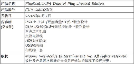 索尼互动娱乐宣布,将于2019年6月7日推出特别设计的游戏日限定版PS4主机(硬盘容量:1TB),建议零售价为2480港币。这款限定版PS4主机是即将于6月7至17日展开,为期11天的游戏日全球优惠活动的其中一环。该优惠活动将为玩家提供PS硬件、周边产品、游戏软件及网络服务等多项精彩优惠。