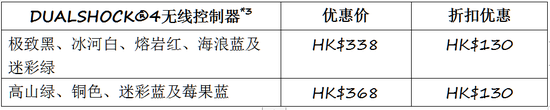 现凡购买DUALSHOCK 4无线控制器,即可享HK$130的折扣优惠。