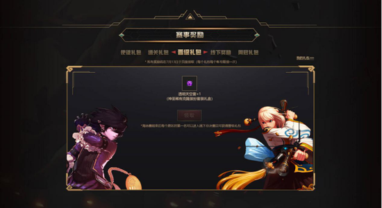 所有晋级成功的参赛队伍成员均会获得官方送出的透明天空套奖励(神圣稀有克隆装扮套装礼盒),而没有顺利晋级的勇士们也不用灰心,根据每支队伍的竞速时间不同,也会匹配相应的奖励。
