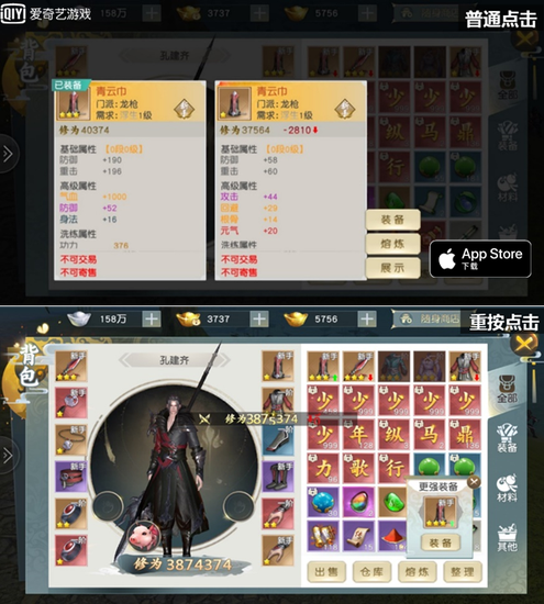 游戏支持苹果3DTouch重按操作,快速批量使用道具、技能,助你在瞬息万变的战斗中快人一步,时刻掌握先机,带来紧张刺激的动作武侠新体验!