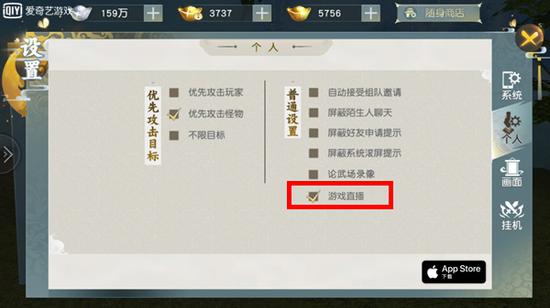 游戏内部植入了iOS直播屏幕Replaykit框架,一键分享你的江湖历程。