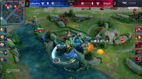 通过技术手段,比赛回溯到6月2日的第二局,RNG.M1比0领先,eStarPro掌握前期优势。经历复赛,eStarPro本局思路就是全面速推,避免被RNG.M后期反扑。虽然一开始他们强攻高地被RNG.M反打3换3,但凭借主宰先锋他们还是顺利推掉高地和拿下暴君奠定胜利。由于经济差距过大,RNG.M无法在正面战场形成对抗,最终凭借持续扩大的经济优势,eStarPro成功扳平比分。
