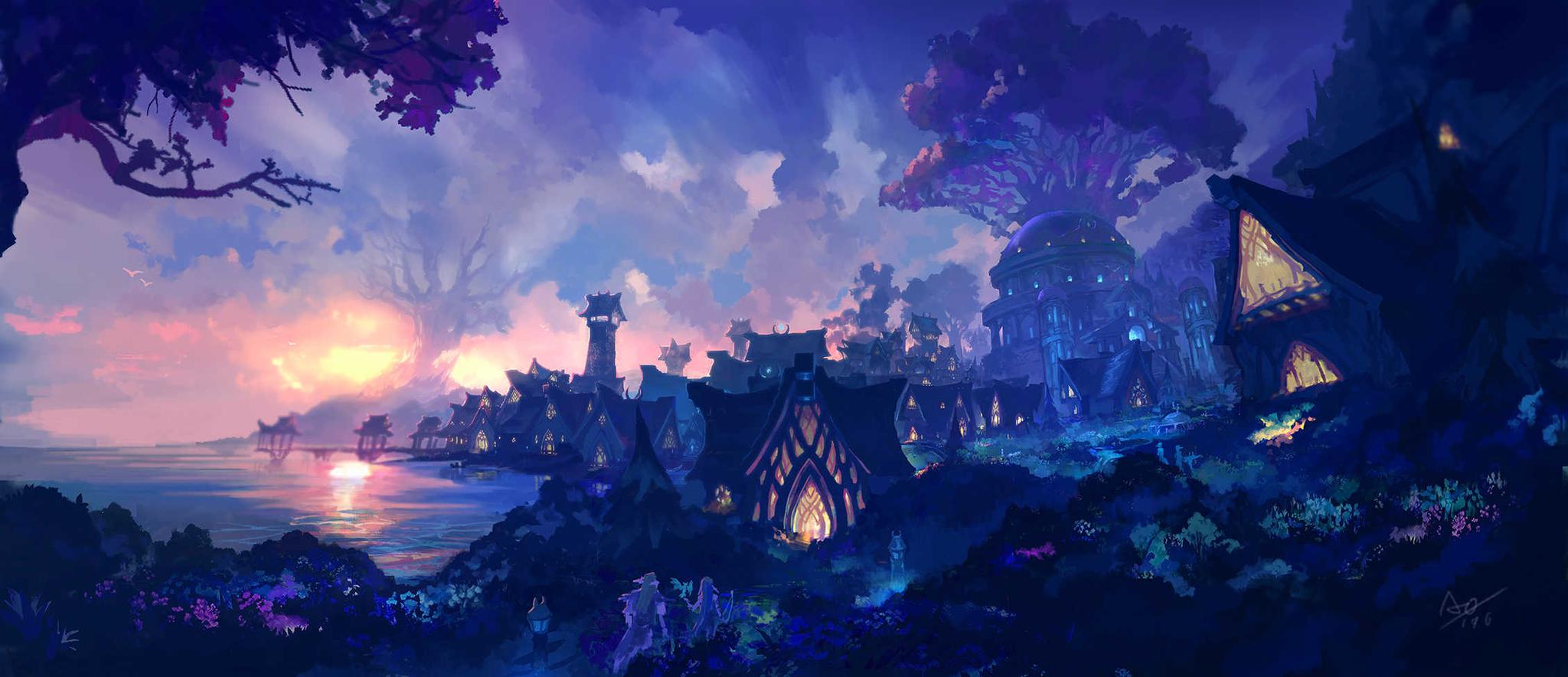 魔兽玩家所绘制的卡利姆多黑海岸奥伯丁港同人画作,让我们一起来欣赏下吧。