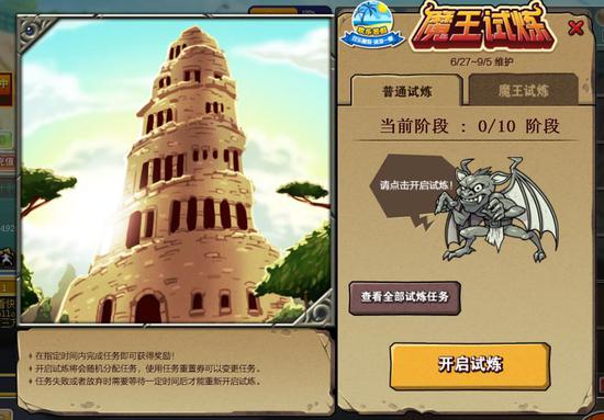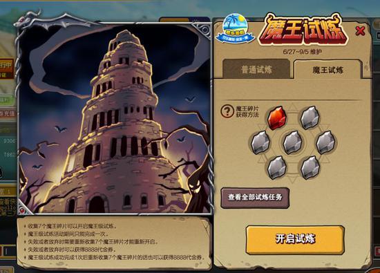 6月27日服务器维护后至9月5日服务器维护前,玩家参与魔王的试炼活动可以获得永久+2,+3稀有装饰以及永久人气服装等你来,快来挑战大魔王发布的任务!
