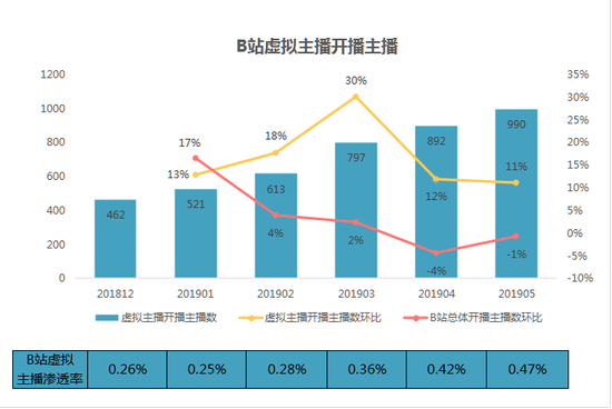 随着被二次元爱好者称为人工智障的世界上第一位虚拟主播绊爱的出道,在网络上已经掀起了一股虚拟主播的诞生热潮,而作为国内二次元文化集结地的B站在去年12月率先推出虚拟主播这一板块,经过半年的时间发展,虚拟主播数据表现由前两月的高速增长到现在开始趋于稳定发展状态。
