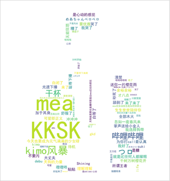 4、直播用户好奇心较重,从热门弹幕中可以看出,对于这种能与自己互动的二次元形象,大部分用户持有好奇心理,尝试与纯虚拟主播进行交流,尝试新的直播体验。