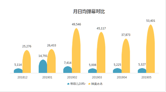 4 在弹幕上帝菲儿Diffir日均弹幕依然低于神楽めあ,帝菲儿Diffir日均弹幕稳定于5000条左右。