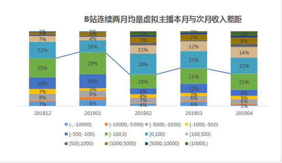 15 连续两个月均是虚拟主播的本月收入高于次月收入主播数在2月份出现了转折,说明经过前两个月的沉淀,虚拟主播月收入越来越高,但是两个月之间的收入差距集中于100元左右