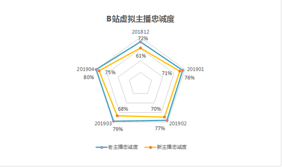 忠诚度:本月次月均是虚拟主播主播数/本月虚拟主播主播数
