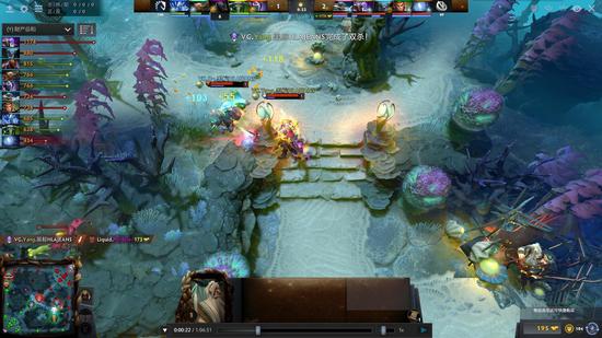 19分半为了抢符双方在下路提前开打,DP被先手但是非常肉没有死,小鱼过来中了一个沉默直接被秒,DP交大拆掉下路二塔。20分钟萨尔为了吃双倍被人马单杀。22分钟VG打盾但是Liquid不敢守,剑圣拿到不朽之守护。