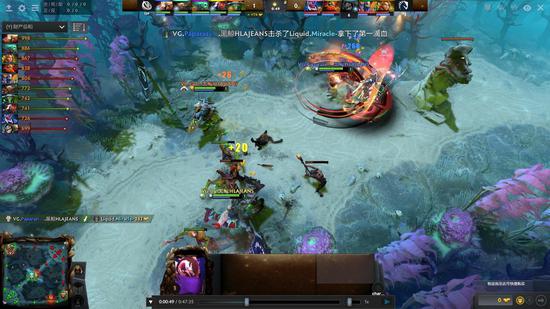 35分钟敌法师还在读秒VG觉得能打在下路抢符,结果还是打不过,匆匆放下白牛黑贤两具尸体之后撤退。37分钟Liquid打掉三代肉山,敌法带盾TA带奶冰魂吃掉A杖。40分钟人马更新A杖Liquid进攻下路高地,VG大招齐开秒掉人马,白牛想要留TA自己被反杀立刻买活再死一次,黑贤被敌法大晕带走立刻买活,敌法师用盾拆出超级兵,由于经济落后实在太大,敌法复活之后VG正面实在是打不过,在队员纷纷被击杀之后打出GG。恭喜Liquid先下一城。
