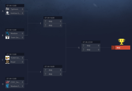 这几支八强队伍分别是台风、IG、Newbee、TS、Team Guys、Royal、CDEC以及Newbee.Y,可以看到除了Team Guys之外,其他几支队伍都是职业摸爬滚打多年的职业战队,很显然,即使是充满不确定性的BO1的比赛,职业战队的水准还是要比大部分玩家临时组建的队伍要强上不少。