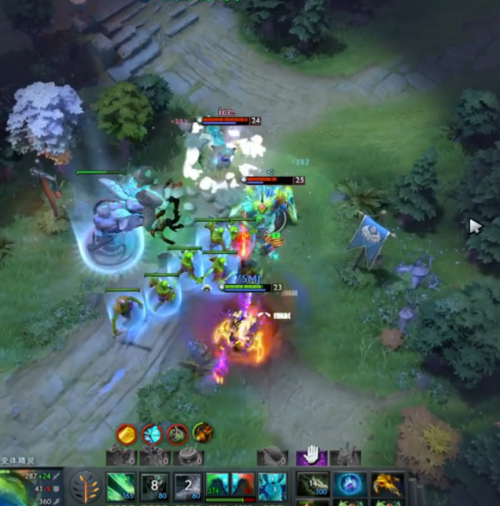 比赛来到13分钟,气体这边主动抱团进攻地精家族的下路,在lion大招收到了白牛之后,交广了所有技能的气体战队迎来了竞技宝地精家族的追杀节奏。先是蓝猫和小狗相继白给,随后在守下一塔的时候船长也被刚拿到了暗灭的TA击杀,虽然他们反扑击杀了对手的双酱油,但是这一波之后之前建立起的经济优势也已经荡然无存。此后双方进入了刷钱节奏,竞技宝地精家族因为在阵容上后期相对较弱,随后主动出击先是抓了船长+神域两人,随后顺势打盾让TA装备上不朽之守护。但竞技宝地精家族没有靠着这个盾做太多的事情,反倒是22分钟lion装备跳刀之后第一波开雾成功抓到了水人,断了敌方大哥的节奏。