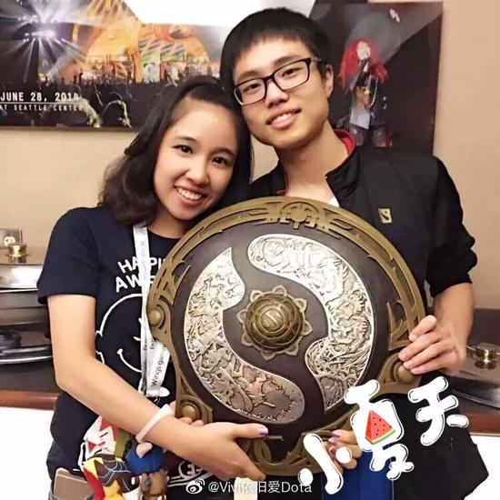 2016.8.14.中国战队Wings在2016年国际邀请赛决赛击败DC战队,夺得冠军,举起了冠军神盾。而Wings战队Carry选手Shadow的女朋友@Vivi依旧爱Dota 也在本次活动中晒出了自己和冠军盾的合照。照片中,@Vivi依旧爱Dota 和Shadow共同捧起冠军神盾,神情难掩夺冠后的喜悦。我们难以忘记那个童话般的故事,我们也期待中国战队能在即将到来的TI9上取得好的成绩。