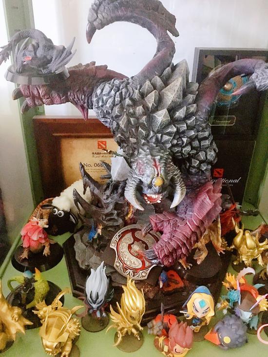 玩家非常熟悉的DOTA2手绘画师@木木爱画画 也晒出了自己的珍藏,图中不仅有冠军神盾,更有全球限量的“伟大的肉山”雕像,以及众多的手办、扭蛋等。
