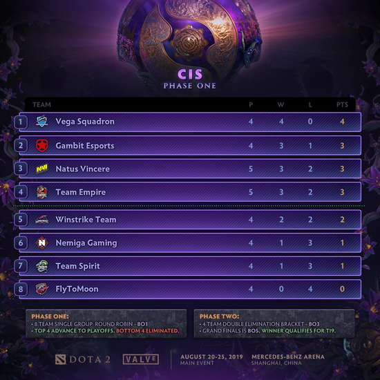 赛前,有不少观众都认为今年独联体区的晋级难度可以和中国区一教高下。到了具体的比赛中,这种说法得到了应验。预选赛的第一天,就连红星老师也没有拿下全部的比赛。而更令人啧啧称奇的是,成军不到一个礼拜的新Vega竟然爬到了小组第一。必须承认,经历海选考验的队伍似乎对当前版本有着更加深刻的了解,中国区很可能也会出现这样的情况。