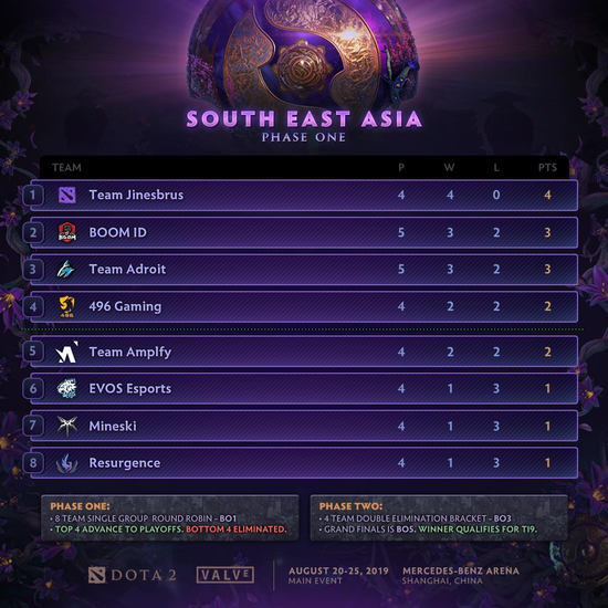 TI9 预选赛的第一个比赛日,东南亚区便连续爆出了多个冷门。赛前被观众们无限看好的Mski在首日只拿到了可怜的一个小分,如果他们不能在明天奋起直追的话,很可能会在小组赛阶段就被淘汰出局。而与此同时,由三名韩国选手组成的新队Team Jinesbrus则异军突起,以四胜零负的成绩位列小组第一。看看这个队的中单和大哥,就知道韩国人这次是有备而来。