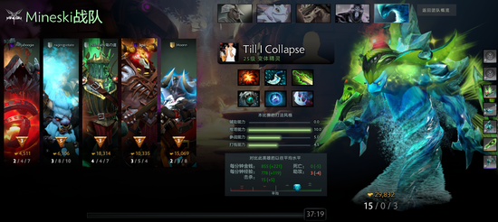 今天的最后一场比赛,Jines的对手正是Mski。看直播的时候,当Mski刚刚选完阵容,我一度还产生了他们可以获胜的错觉。可到了具体的比赛中,白牛、火枪和术士统统不管用,在无解肥水人的面前,Mski显得过于脆弱。37分钟的时间里,23savage一共拿了15个人头,并且没有一次阵亡记录。比赛结束的时候,23savage还在对面的泉水里完成了暴走。与其说是“虎落平阳被犬欺”,不如说Team Jinesbrus的确技高一筹。