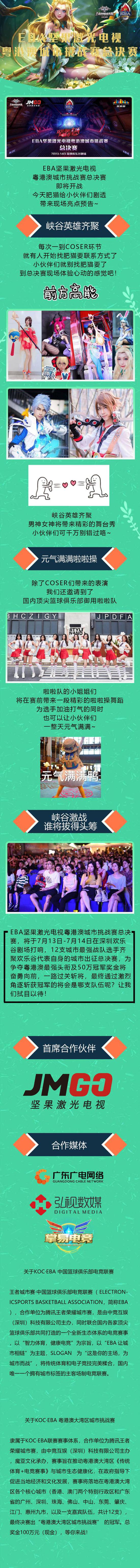 EBA坚果激光电视粤港澳城市挑战赛总决赛,将于7月13日-7月14日在深圳欢乐谷剧场打响,12支城市最强战队选手齐聚欢乐谷代表自身的城市出征总决赛,为争夺粤港澳最强头衔及50万冠军奖金将奋勇向前,一路过关斩将,最终通过激烈角逐斩获冠军的将会是哪支队伍呢?让我们拭目以待!