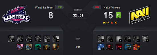 输掉野区团战,经济被NAVI拉平。Winstrike交出了双酱油的买活,才勉强守住了中路一塔。不过,买活守塔毕竟是一种饮鸩止渴式的打法。接下来的几分钟里,先是Lil的拉比克在下路被抓,随后Winstrike又把一代肉山拱手相让。本来肉山盾没了就没了,可Winstrike就是不愿撤退。27分钟的肉山团战,陈和玛尔斯相继阵亡,拉比克也在残局被大树捉住。三四五号位全部阵亡且全部无法买活,Winstrike奄奄一息。用尽所有力气,Winstrike在下路团战中只打掉了小娜迦的不朽盾。到了高地上的大决战,Lil未能用偷来的小娜迦大招救下女王。一波直捣黄龙,NAVI拆掉了Winstrike的高地。36分钟,Winstrike缴械投降,NAVI先下一城。
