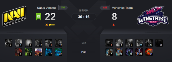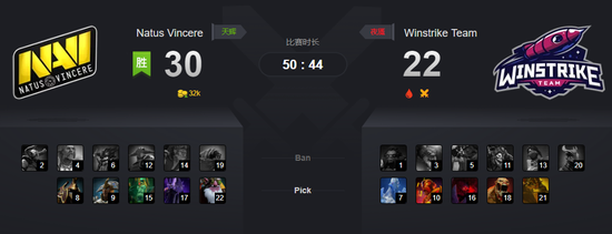 41分钟,NAVI收下二代肉山。三分钟后的高地团战,Winstrike打掉了火枪的不朽盾。可是在45分钟的第二波交锋中,火枪在最后时刻狙杀火猫。残局,小狗也逃不出火枪的击杀。火猫买活,小狗买活,但Winstrike已经赢不了了!49分钟,毒狗在高地上被小强先手——毒狗死了无法买活!拉锯战,小狗也死了!恭喜NAVI!三比零的完胜!