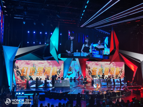 在两位队长的带领之下,“蓝水翡翠”、“幻夜星河”这两支以荣耀20 PRO配色命名的战队赢得了台下观众的阵阵掌声。