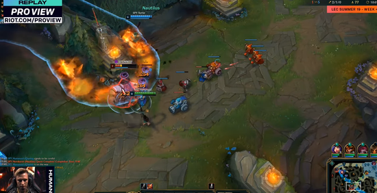 5分20秒,下路洛先手控制到霞后伊泽瑞尔没有跟上输出,洛反被诺提勒斯控制、减速并且击杀。