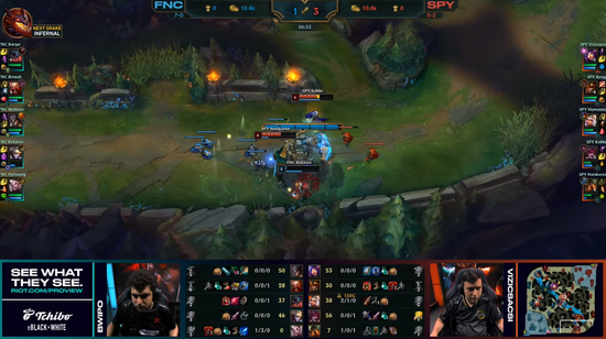 最终FNC以13:25的人头比输掉了LEC第二天的比赛,同时SPY也终结了FNC在LEC的连胜。