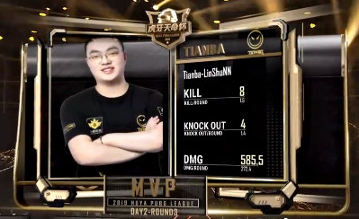 本局来到决赛圈的是Tianba满编、VC三人和DAE两人。Tianba在之前的战斗中活力全开,拿下了12个人头分,随后他们把控住了梅花桩中心。圈边的DAE和VC率先交战,DAE先手淘汰掉VC两人。最后VC独狼在角落打掉DAE一人之后自己也瞬间被补上枪线的DAE队友给淘汰出局。拿分心切的Tianba冲到电圈内收掉了DAE倒地的人头分。而DAE最后一个人倒在了电圈内,Tianba成功吃鸡。