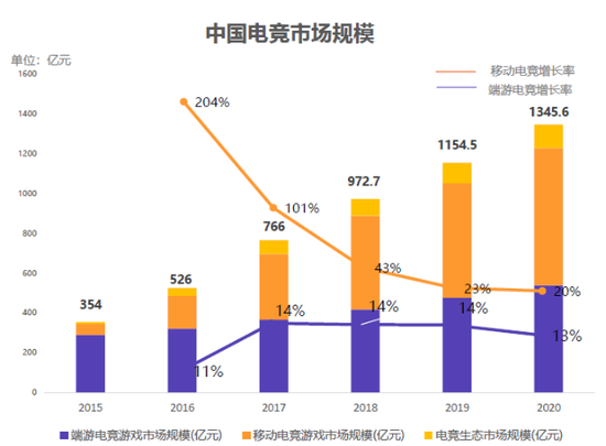 2014年,全球游戏产业的收入就已经达到810亿美元,超过了音乐产业,直追影视产业——电子竞技是其中增值最快的,产值每年以超过20%的速度增长。中国电竞游戏市场实际收入,2014年是226.3亿,2015年是268亿,2016是504.6亿。2017年达到730.5亿元,2018年为940.5亿,直指千亿大关。荷兰分析机构Newzoo报告显示2020年中国电竞用户规模方面预计达到4.3亿,中国电子竞技市场已经成为世界上最具影响力和最有潜力的市场。