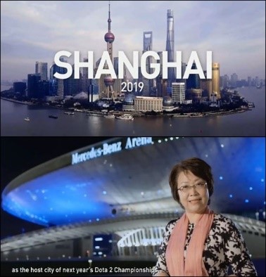 上海市副市长翁铁慧在Ti9官方宣传片中说道:“我站在浦东的梅奔文化中心前,代表两千四百万上海市民,感谢Valve选择上海,欢迎所有的DOTA玩家和电竞爱好者欢聚一堂。”