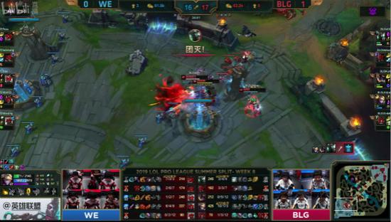 场上的局势瞬息万变,双方将比赛打成了回合制游戏,轮流在团战中取得巨大优势,而BLG赢下的团战更为关键,刚刚进入20分钟的关键时间点,BLG团灭WE,拿下第一条大龙。