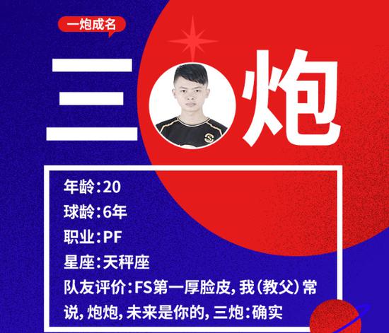 三炮就是其中的典型人物,14岁就开始接触FS,20岁就拿下了地区赛冠军,曾经的路人王终于用一个冠军证明了自己,师从道道晴天,球风坚韧,他也曾遇到过成长的烦恼,第一次线下成都站遇见了曼琳、染指、椛絮组成的队伍,被血虐出局,这一次让他认识到了自己与FS大神的差距,他遇到了最迷茫的时刻,不断的连败让他失去的信心,甚至还卸载了游戏。但是没过多久,他还是重新拾起了FS,选择继续坚持下去!