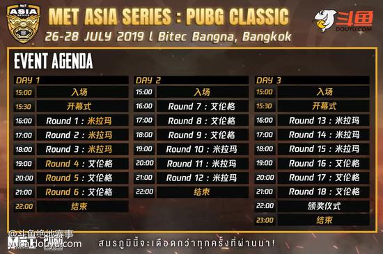 MET亚洲邀请赛是由蓝洞授权,MET承办的2019年面向亚洲赛区的顶级比赛,也是2019年度第三个PUBG国际赛,亚洲赛区(PCL、PKL、PSC、PJS、PML)最顶尖的16支职业战队齐聚泰国,他们将通过3天18场比赛一决高下。