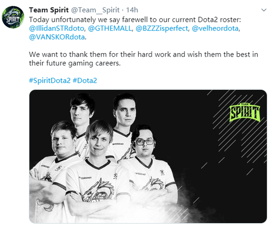 今天,Spirit宣布再次解散他们的DOTA2阵容,仅仅是2019年,这就已经是Spirit第二次解散他们的DOTA2战队了。