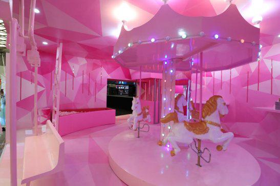 最厉害的是,雷蛇还专门搭建了一个旋转木马在粉晶游乐场中,绝对是CJ现场的一大风景线,可以说是CJ上最值得打卡拍照的圣地了。