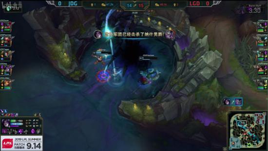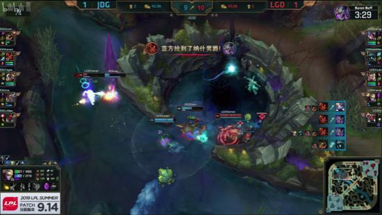 JDG依靠阵容中的大量AOE伤害和高回复能力不断寻找开战机会,LGD连续输掉两波团战后,JDG顺利拿下大龙。