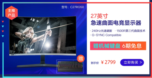如果你也想拥有一台韦神等明星选手同款的显示器,那就赶快登陆三星显示器京东自营旗舰店(https://item.jd.com/100006163446.html),现在购买还有机械键盘、6期免息等好礼相送,携手第四届黑金娱乐硬件大奖--三星玄龙骑士显示器CRG5,开启您的极致游戏体验,在游戏中获得属于自己的大奖吧!