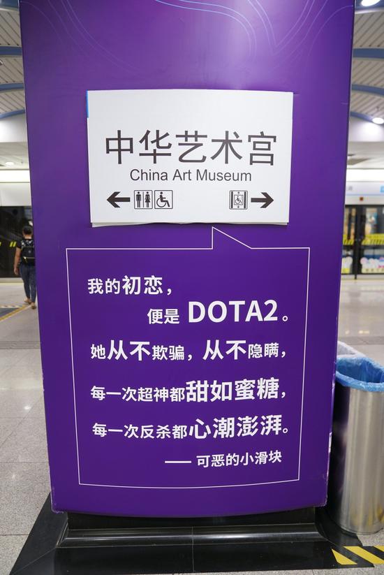 在整个TI9期间,中华艺术宫地铁站都会欢迎DOTA2玩家的到来,当地铁驶抵本站,玩家就已进入DOTA2的世界之中。从这里出发,大声一点为梦想加油,为支持的战队助威,我们在TI现场,见证新的传奇诞生,英雄,见证不朽!